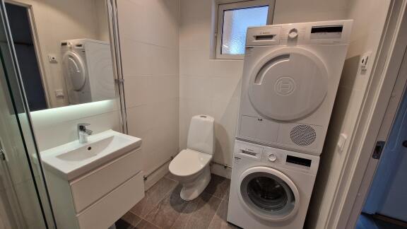• Lägenheten är utrustad med tvättmaskin och torktumlare