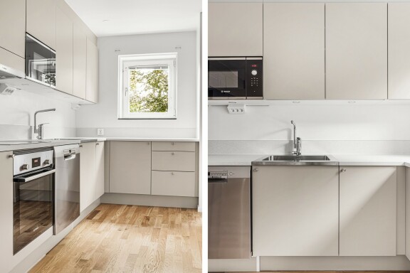 Bostaden präglas av ljusa materialval och genomtänkta ytor som skapar en luftig känsla. Köket ligger centralt placerat och binder samman bostaden på ett naturligt sätt, medan vardagsrummet erbjuder gott om plats för både umgänge och avkoppling. Förvaringsmöjligheterna är goda med bland annat klädkammare och tillhörande förråd.