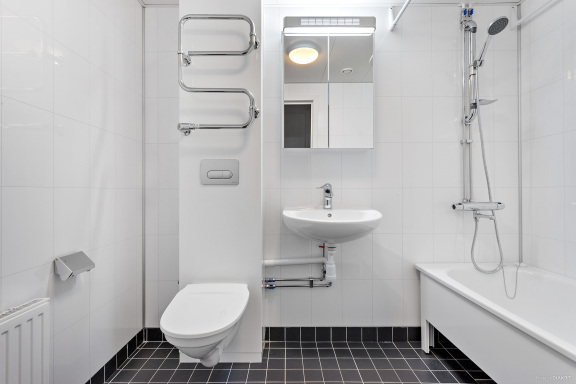Bilderna är exempelbilder. Samtliga bilder, med undantag för köksbilden, är fotograferade i en lägenhet med liknande planlösning. Avvikelser i detaljer och materialval kan förekomma.