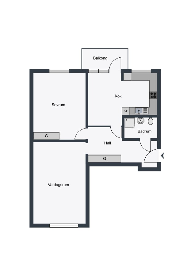Vardagsrummet är lättmöblerat med fint ljusinsläpp, medan sovrummet är rymligt och erbjuder bra förvaring via skjutdörrsgarderob. Även i hallen finns extra förvaringsmöjligheter i stor skjutdörrsgarderob. Badrummet är helkaklat och utrustat med dusch. Genomgående ekparkett och vitmålade väggar ger bostaden ett fräscht och enhetligt intryck.