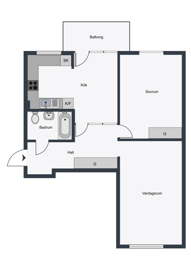 Lägenheten totalrenoverades 2016 och erbjuder en fräsch och trivsam standard genomgående. Det stora köket har vita stommar och luckor, ekmönstrad laminatbänkskiva samt rostfria vitvaror såsom inbyggnadsugn, glaskeramikhäll och kyl/frys. Diskmaskinen är integrerad för ett enhetligt och stilrent intryck. Här finns gott om arbetsyta och plats för ett större matbord – och från köket har du direkt utgång till den rymliga balkongen mot innergården.