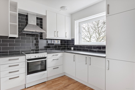 Observera att bilderna är exempelbilder från en lägenhet med liknande planlösning och inte är fotograferade i den aktuella lägenheten. Bilden på köket visar färg och materialval men är fotograferad i en lägenhet med annan planlösning. Detaljer och skick på lägenheten kan skilja sig från bilderna. Lägenheten visas innan uthyrning.