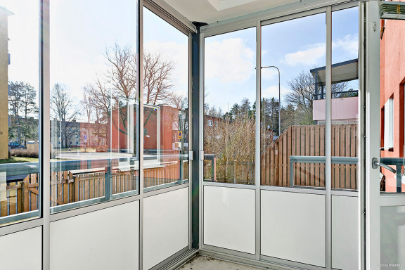 Den inglasade balkongen och uteplatsen ger extra yta att nyttja och skapar en fin koppling mellan inne och ute. Uteplatsen sköts helt av hyresgästen och i samband med kontraktsskrivningen signeras ett uteplatsavtal som reglerar hur uteplatsen skall skötas.