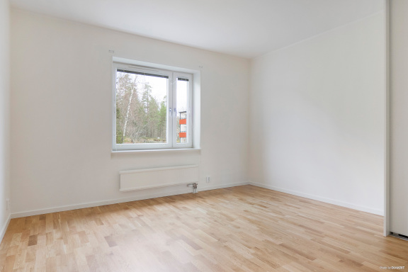 Två rymliga sovrum med stora fönster och plats för både säng och ytterligare möblering. Förvaringsmöjligheterna kompletteras av en praktisk klädkammare i hallen.