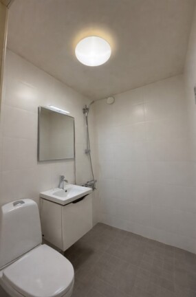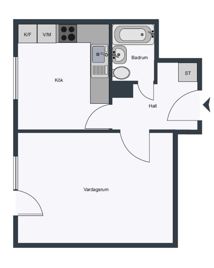 Lägenheten erbjuder ett rymligt allrum med fint ljusinsläpp och utgång till en fransk balkong som ger en luftig känsla. Köket är stilrent och funktionellt med goda arbetsytor och integrerade vitvaror. Badrummet är helkaklat och utrustat med dusch samt behaglig golvvärme. Hallen har bra förvaring och bostaden har dessutom ett separat förråd.