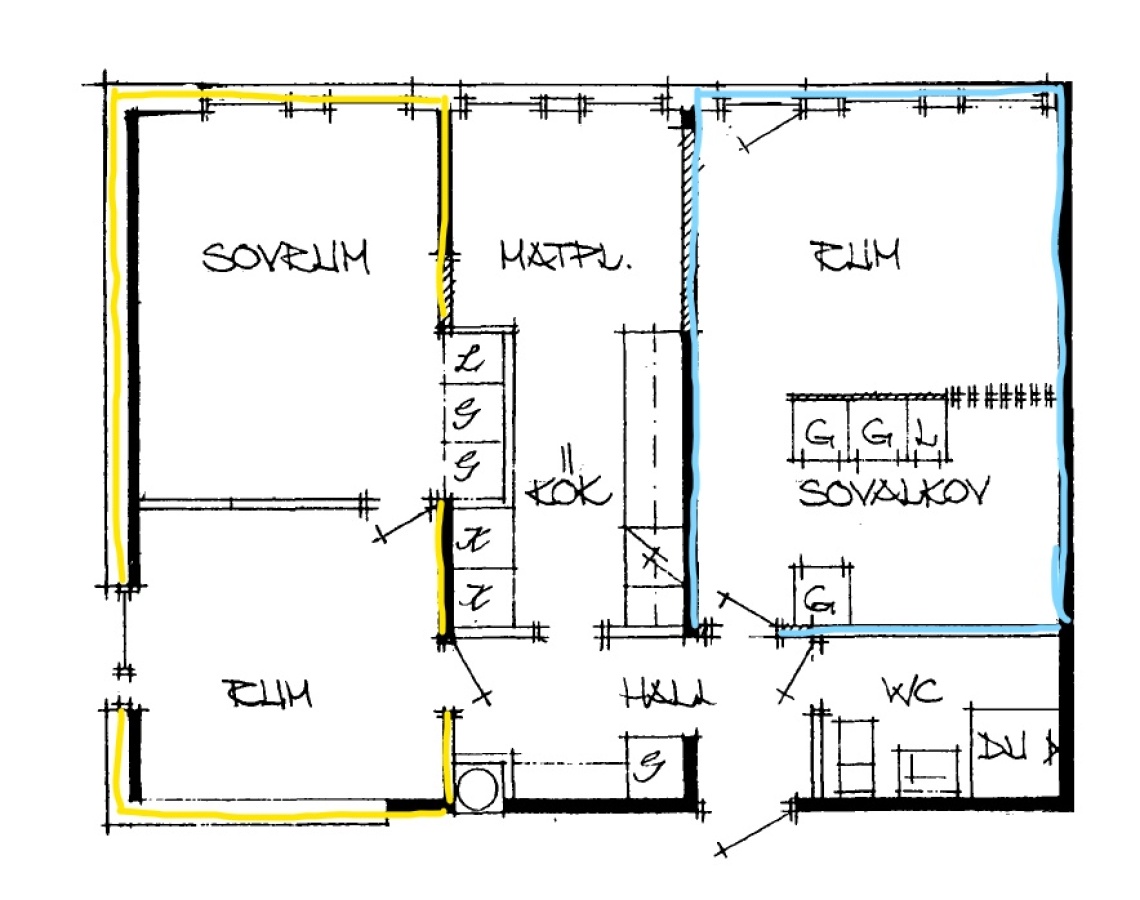 I denna delade lägenhet disponerar du två egna rum utrustat med säkert cylinderlås för extra trygghet (se vänstra sidan av planlösningen) där kök och badrum delas med en annan student – en perfekt boendeform för dig som vill kombinera privatliv med gemenskap.