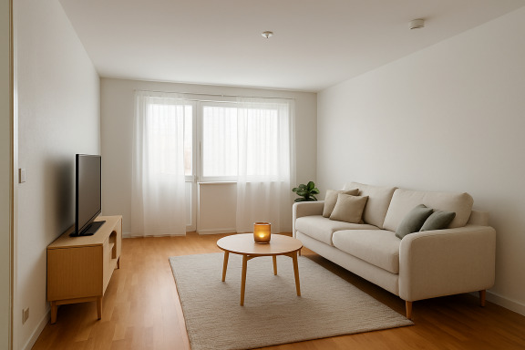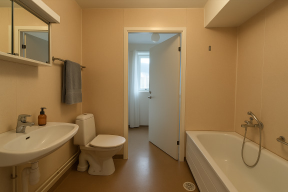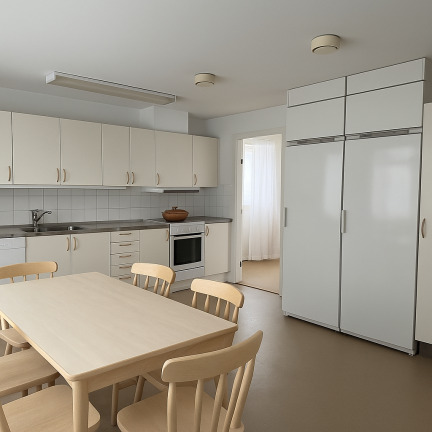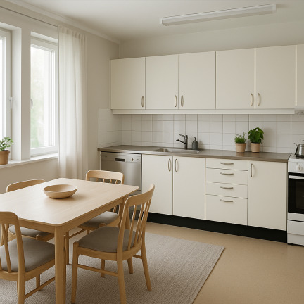 Lägenheten har genomgående ljusa väggar och ett fräscht parkettgolv i vardagsrummet. Golven i hall och kök byts inför inflytt för att skapa ett modernt och enhetligt intryck. Köket är funktionellt och kan utrustas med diskmaskin mot en tilläggskostnad på 132 kr/mån. Tvättstugan ligger praktiskt nära både kök och badrum, och båda sovrummen erbjuder bra förvaringsmöjligheter.