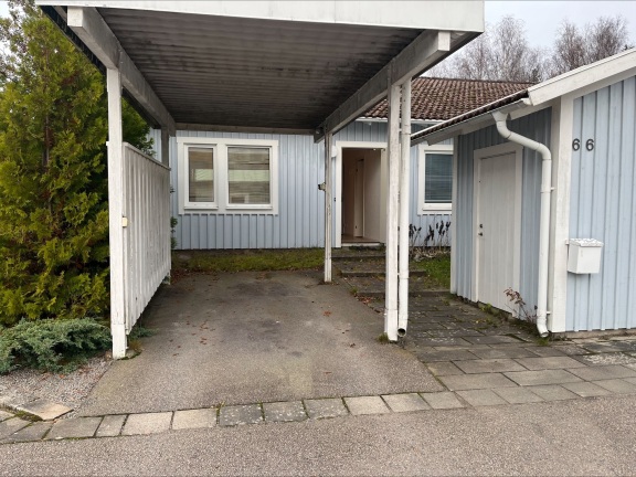 Här bor du med två uteplatser, en mindre vid entrén och en större på baksidan med både gräsyta och stenplattor – idealiskt för sommarens måltider och avkoppling. I anslutning till bostaden finns dessutom carport och förråd som ger extra förvaringsutrymme.