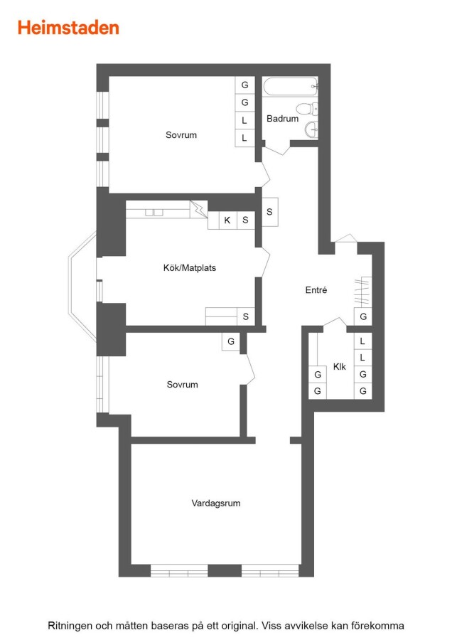Rymlig hall med förvaring, helkaklat badrum med badkar, stort kök med plats för matbord med 8 stolar, två rymliga sovrum varav en med inbyggd förvaring. Vackert vardagsrum med utgång till liten balkong mot norr och den charmiga gågatan.