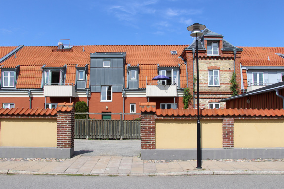 Regementsgatan är ett omtyckt område i Ystad med bekvämt gångavstånd till centrum, service, restauranger och kommunikationer. Samtidigt finns natur och promenadstråk nära, vilket ger en fin balans mellan stadsliv