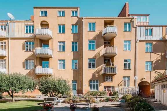 Lägenheten har en välplanerad planlösning med en inbjudande hall, ett rymligt sovrum med plats för dubbelsäng och ett vardagsrum med hemtrevlig känsla. Köket har plats för matbord med fyra stolar och utgång till en möblerbar balkong mot innergården – en perfekt plats för morgonkaffet eller kvällens avkoppling.
