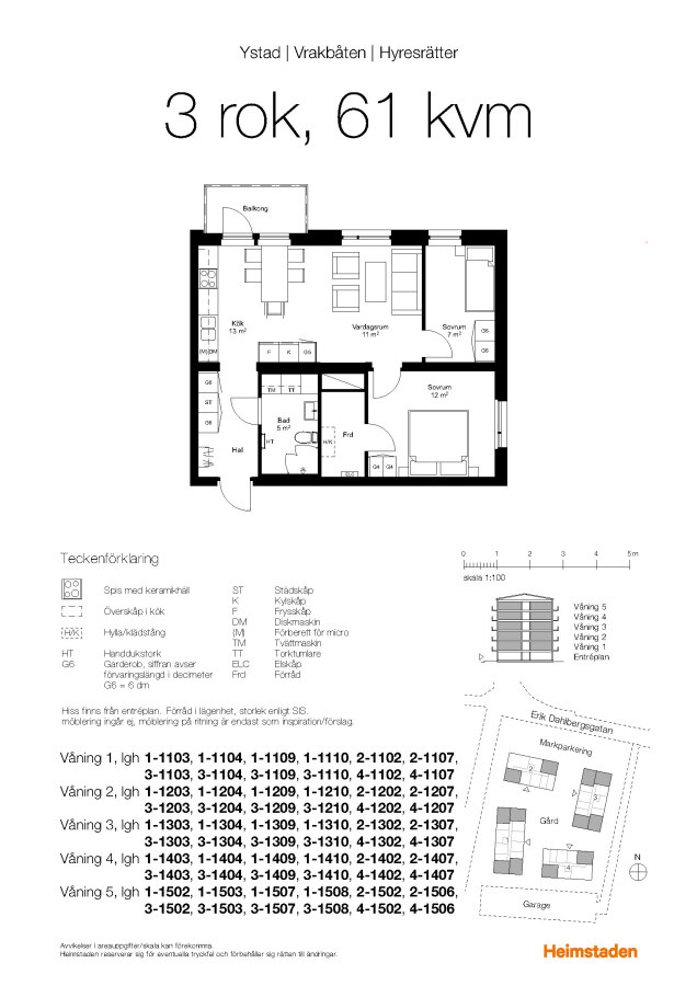 Heimstaden har beslutat att våra nyproducerade boenden ska vara helt rökfria. Rökförbudet gäller i och utanför hela fastigheten och dess närområde. Med omtanke för alla våra hyresgäster och allas hälsa vill vi bidra till bättre trivsel och boendemiljö.Den angivna hyran är beräknad i 2026-års hyresnivå och i den ingår värme och kallvatten.Hushållsel samt varmvatten tillkommer. För hushållsel tecknas enskilt avtal med valfri leverantör.Har du inte gjort ett aktivt val innan din inflyttning blir Ystad Energi din elleverantör.I din hyra ingår TV-baspaket från Telia.