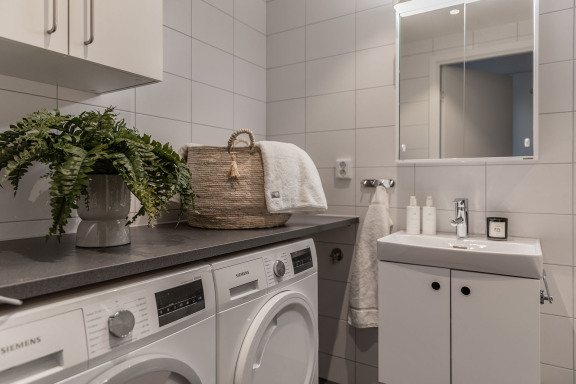 • Lägenheten är utrustad med tvättmaskin och torktumlare