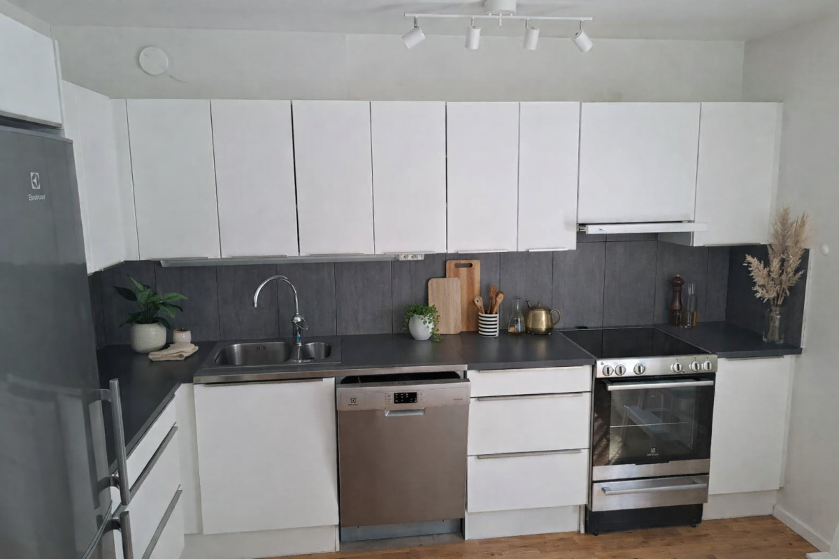 Redan i hallen möts du av en generös yta med gott om förvaring. Lägenheten har enhetliga parkettgolv och ljusa väggar som skapar ett modernt och luftigt intryck. Det helkaklade badrummet är utrustat med dusch, kommod och badrumsskåp. Sovrummet är rofyllt och erbjuder garderober med bra förvaringsmöjligheter. Köket har ljusa luckor, diskmaskin samt kombinerad kyl och frys, och här finns även plats för matbord med fyra stolar. Det rymliga vardagsrummet blir hemmets naturliga samlingspunkt och har en fransk balkong som släpper in rikligt med ljus. Lägenheten hyrs ut i befintligt skick. Alla intresseanmälningar på våra lediga lägenheter görs via hemsidan. Vi reserverar oss för eventuella felskrivningar. Bilderna i annonsen är redigerade med AI och kan avvika något från verkligheten, vi reserverar oss för eventuella avvikelser som kan förekomma