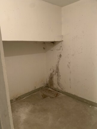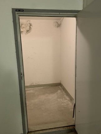 - I källaren en trappa ner från entrén. Entré i porten på Älgvägen 4.